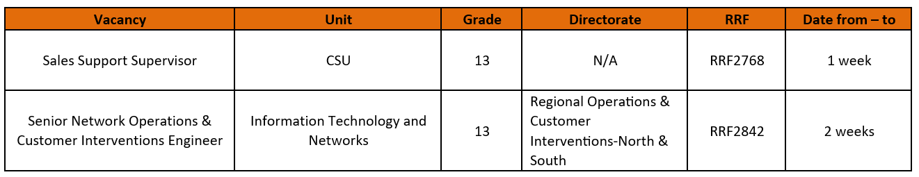 To know more, please check the details about the current vacancies through the intranet.