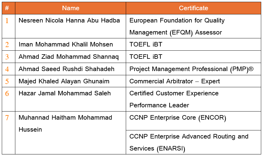 We are pleased and proud to congratulate our colleagues on receiving professional certificates in their field of work, from accredited international centers and institutes after successfully passing the exams.