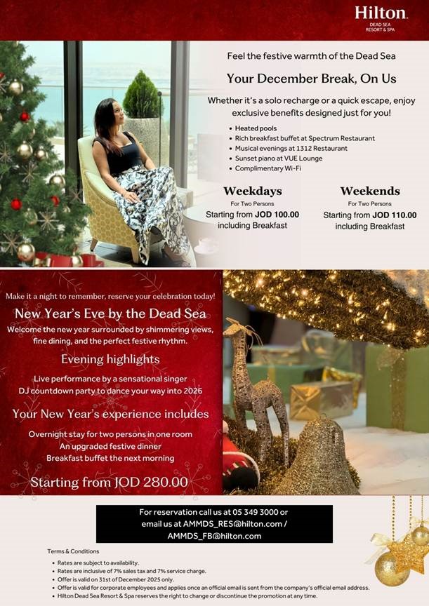 Warm Weather, Festive Spirit! Discover December at Hilton Dead Sea Resort & Spa